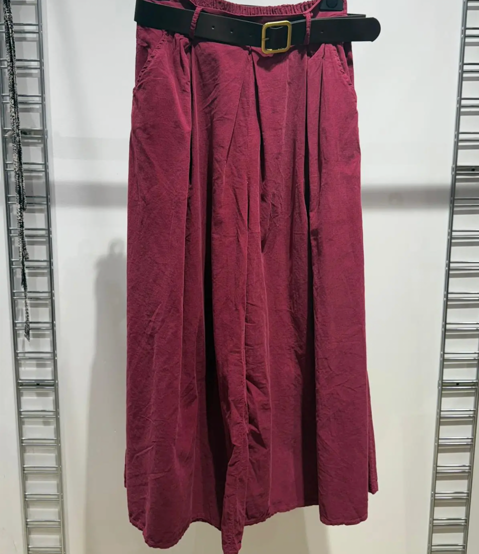 Bukser med pressefolder i fløjl med bælte